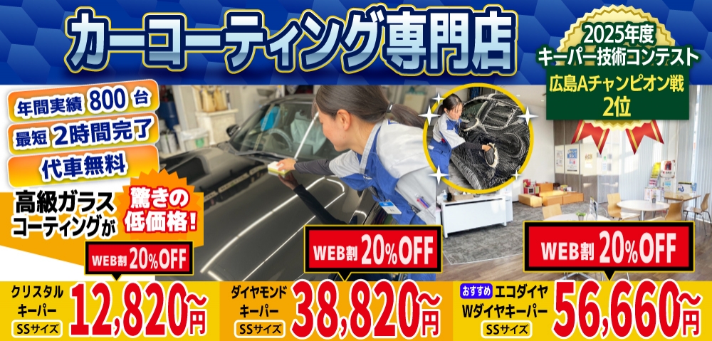 | 特徴 | レジン被膜に、高密度ガラス皮膜を二層重ねた、三重構造。 ダイヤモンドキーパー同様に空気乾燥させつつ、厚いガラスの層が2倍あることで、ツヤや汚れにくさが更にアップ。 もちろん水シミ、紫外線もしっかりガード。 |