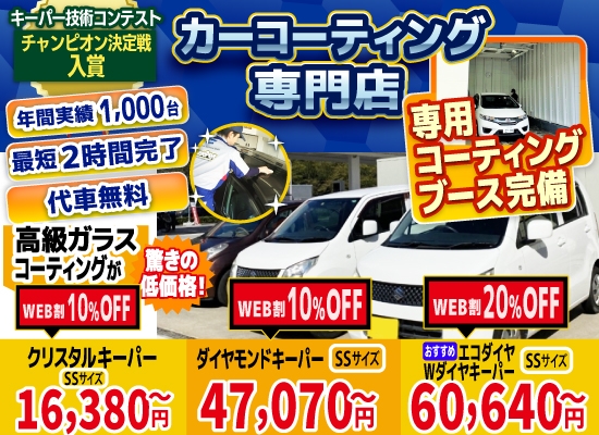 当HPよりキーパーコーティングを施工頂いたお客様に、全面施工の超撥水ウィンドウコーティングと油膜取りを割引させて頂きます!