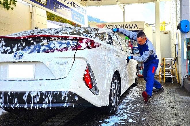汚れの密着を防ぐ被膜で、雨が洗車に。