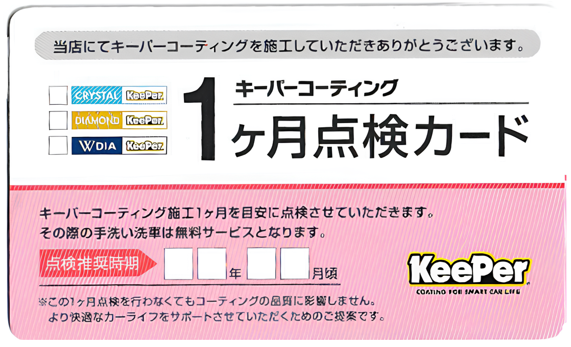 また、当店では全てのキーパーコーティングに施工証明書を発行を実施しております。
