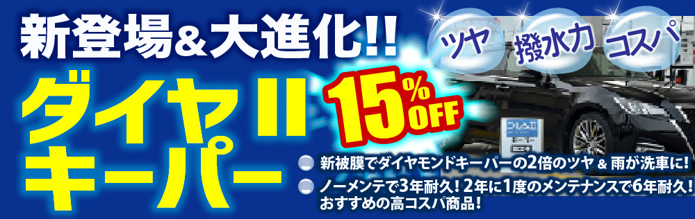 ダイヤモンドキーパー、Wダイヤモンドキーパー、エコダイヤキーパーを施工されているお客様も、メンテナンスメニューからダイヤⅡキーパーへ切り替えをお選びいただけます。