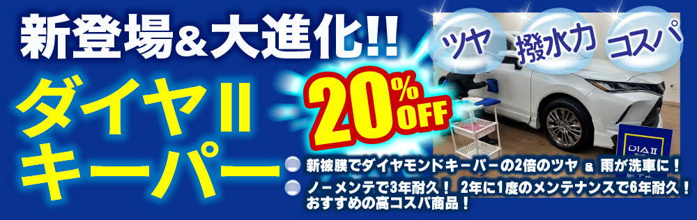 ダイヤモンドキーパーの2倍の艶!ノーメンテで3年耐久。新被膜で、雨が洗車に!