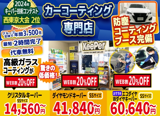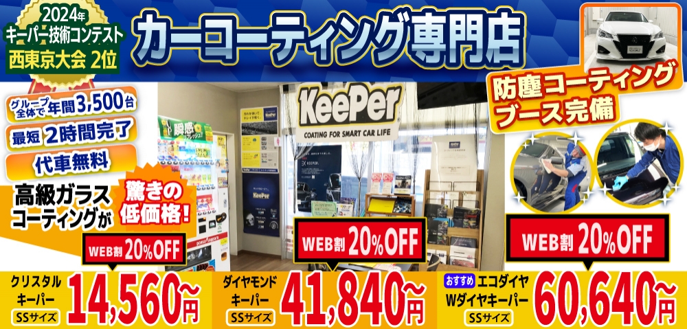 | 担当者のコメント | この度はKeeperが誇る最上級、EXキーパーを当店にお任せ頂きありがとうございます! 抜群の艶と水弾きをお楽しみください!また定期メンテナンスもお勧めいたします! 当店は密閉ブースにてEXキーパーの施工を承っております。 ぜひお気軽にお問い合わせください! |