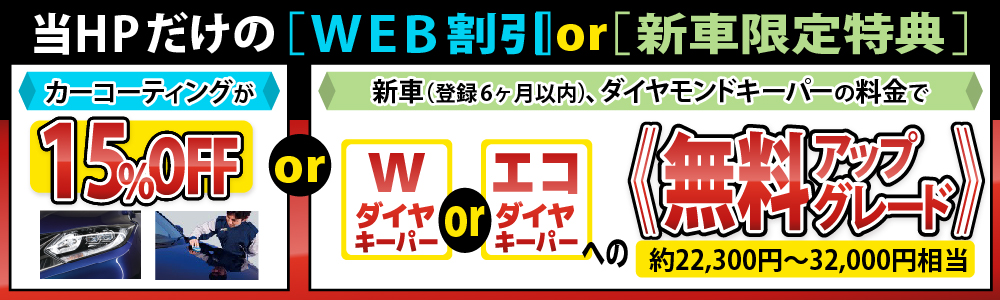 | 担当者のコメント | Wダイヤモンドキーパー施工ありがとうございます。 3年間ノーメンテナンスでキレイが続くガラスコーティングです。 ガラスの被膜がクリスタルキーパーより密度があるので汚れにくく、 撥水性も抜群です。 これで普段の洗車が楽になりますね。 今後とも宜しくお願い致します。 |