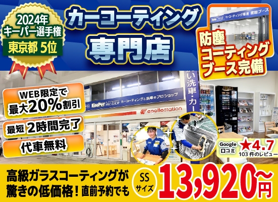 大田区・世田谷区・目黒区・品川区エリアのカーコーティングなら当店にお任せ!コーティング1級技術士在中!