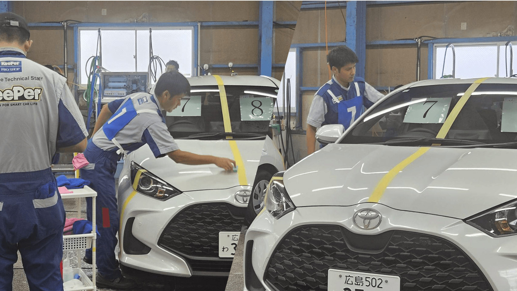 施工箇所 | ①窓ガラス全面 ②アルミホイール4本 ③ヘッドライト ④テールレンズ ⑤サイドバイザー(ある場合) ⑥ドア内側のステップ部分 ⑦ボンネット裏側 ⑧トランクの裏側 ⑨給油口の内側 ⑩エンジンルームの中 ⑪除菌車内清掃 ⑫樹脂フェンダーキーパー |