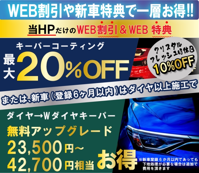 担当者のコメント | この度Wダイヤモンドキーパープレミアム施工、当店をお選びいただきありがとうございました。またのご来店もお待ちしております。 |