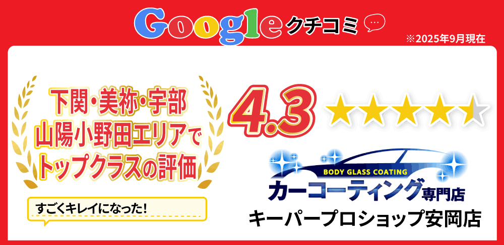 担当者のコメント | この度HPから当店をお選び頂きありがとうございました。 日頃から良くお手入れされてるようでしたがクリスタルキーパー施工によりさらにツヤツヤ、ピカピカです。 今後ともキレイのお手伝いをさせて頂きますのでよろしくお願い致します。 |
