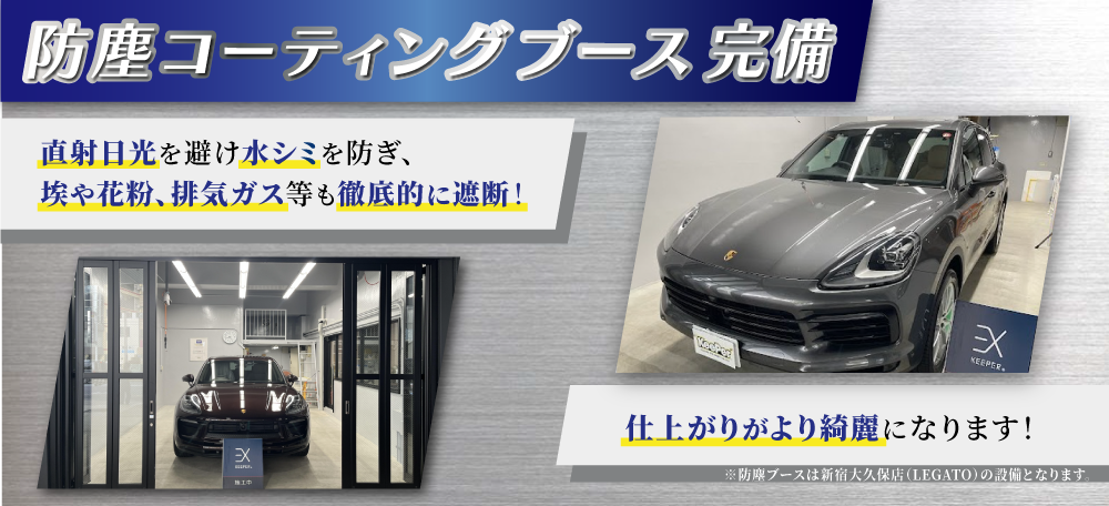 また、当店はキーパープロショップの中でも最新設備を完備しております!完全密閉型コーティングブースも新設しましたので、天候に左右されずコーティングを施工することが可能です!