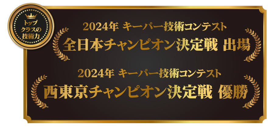 当店には、2025年キーパー技術コンテスト全国1位を獲得したスタッフが在籍しております。