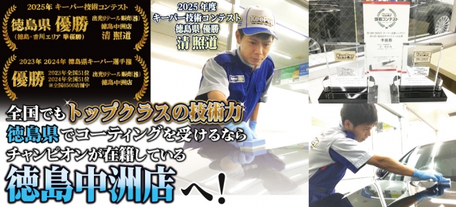 私達キーパープロショップは、徳島市・阿南市・鳴門市・吉野川市・小松島市・阿波市・藍住町エリアのカーコーティング専門店として、日本ダントツのカーコーティングブランド、キーパープロショップとして認定を受けております!
