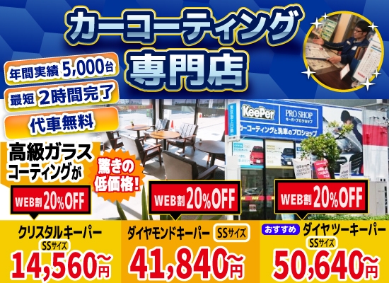 | 担当者のコメント | この度は当店でダブルダイヤモンドキーパー施工ありがとうこざいます。コマメな洗車を意識して頂くとお車を維持できます。 また何かあればお気軽に当店にご相談下さい。 |
